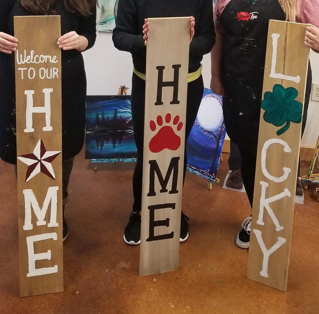 $75: Double-Sided Wood Porch Leaner (8x60") - Two hours of instruction*, choice of colors and design.