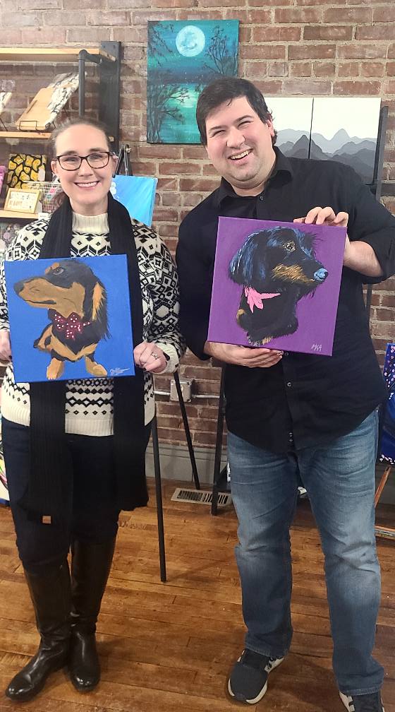 Perfect family or adult class for a day time get together, girls night out, date night, various celebrations such as bridal showers, mother's day or birthdays, to make as a gift for a good friend or relative, or just because you want to make one! Your beloved pet will be sketched out prior to the start of class, ready for you to paint when you arrive. Choose your own colors and paint along with an artists giving you tips and teaching you tricks to create your own masterpiece.